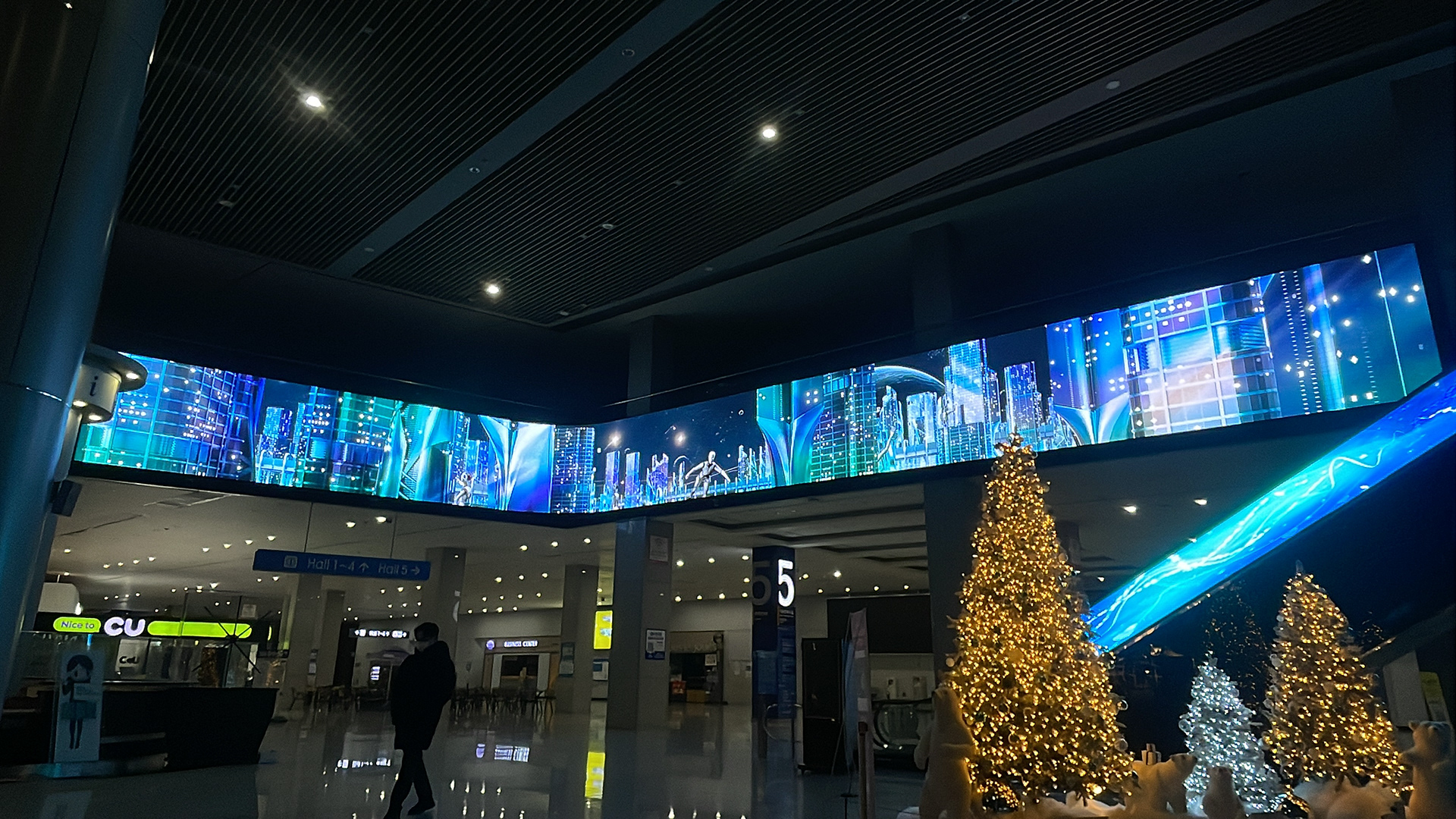 " 킨텍스 메인로비 공간에 미디어월 설치와 미디어아트 제작 프로젝트 / 영상제작 총괄과 브릿지 영상 및 챕터3 제작, 각 파트별 작업점검과 최종 컴포지트를 담당하였습니다. "